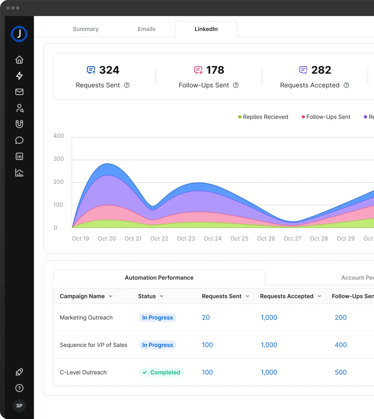 Monitor campaigns in the outbox, organize replies in Unibox, and refine strategies with real-time insights.