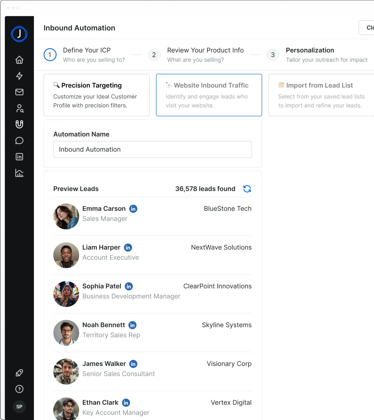 Define your ICP with advanced filters and enrich data for precise targeting.