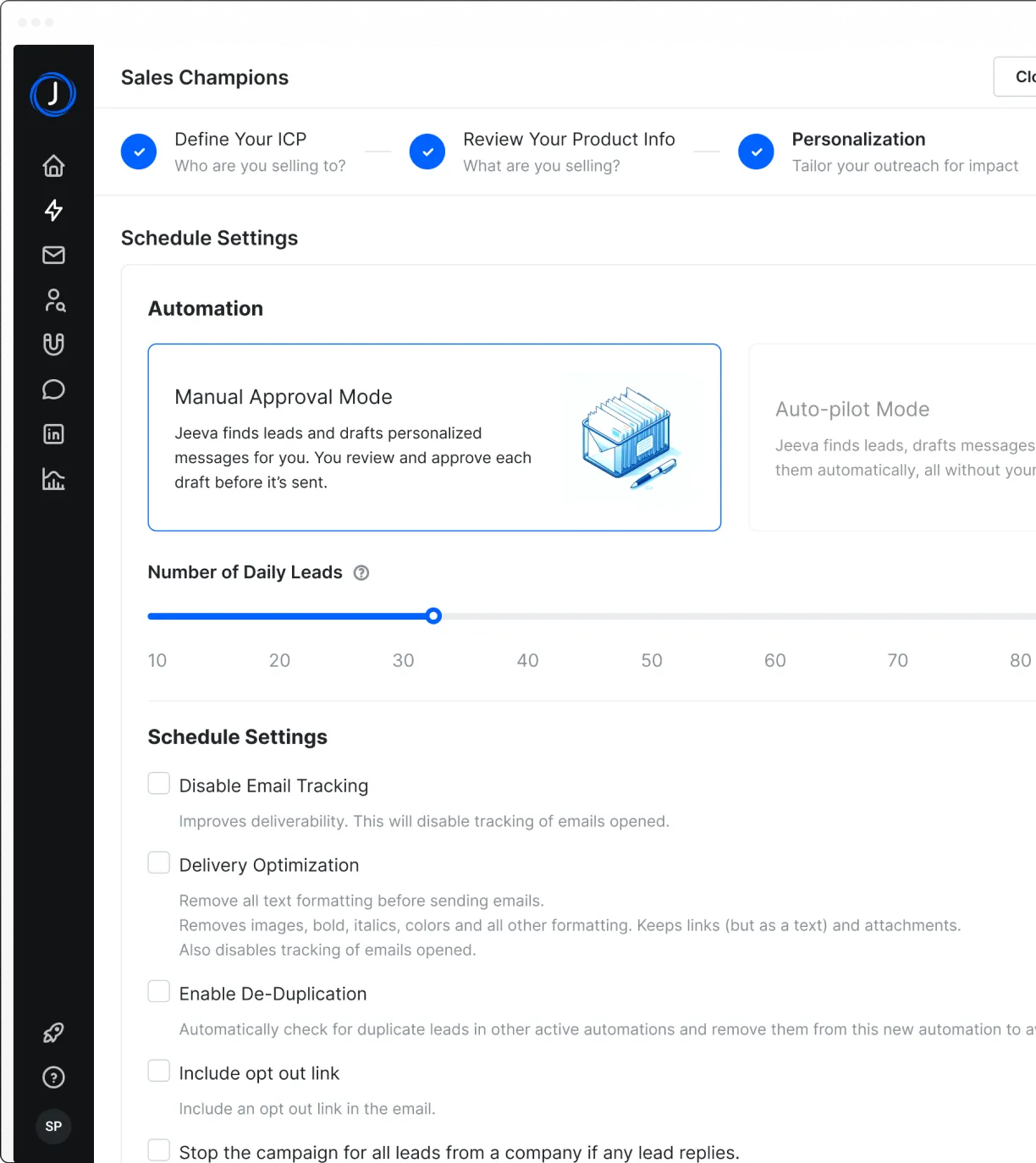Jeeva runs daily personalized campaigns. You close deals; we drive growth.