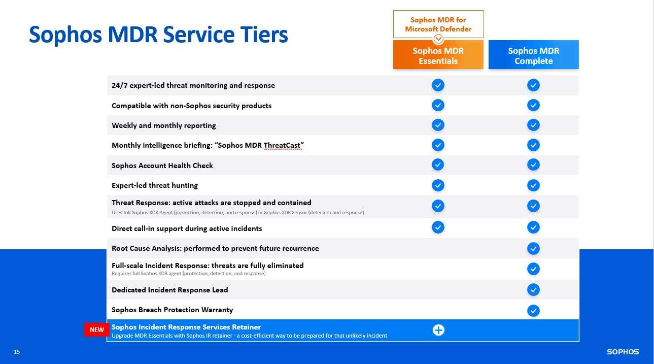 What's the difference between Sophos MDR Essentials Vs Complete
